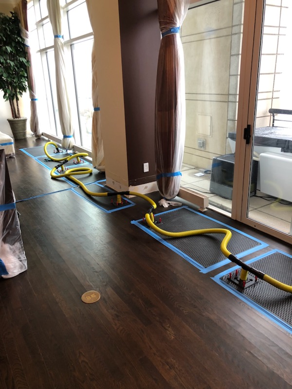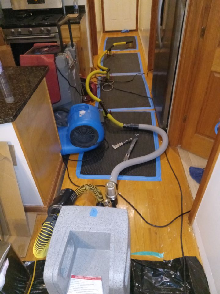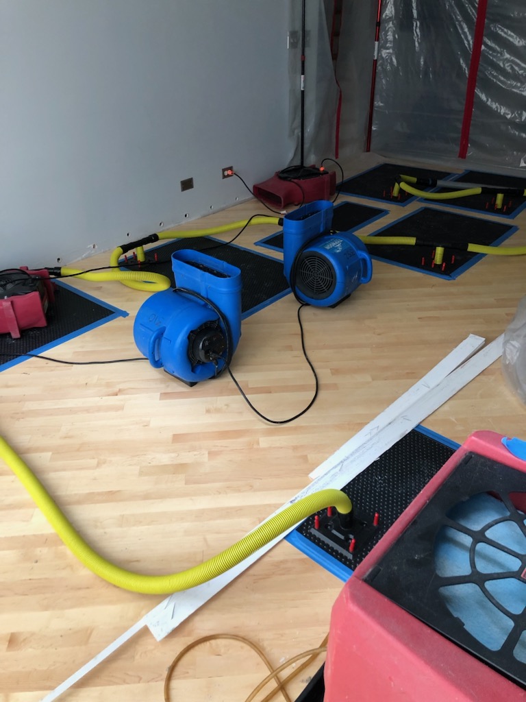 While the demolition may be happening, the latest drying equipment is being installed such as high-velocity air movers, low-grain refrigerant dehumidifiers, and hardwood floor drying rescue mats among others. During the mitigation process we will clean and sanitize all surfaces in the affected areas with heavy duty cleaning agents, as well as antimicrobials to disinfect and prevent mold growth.